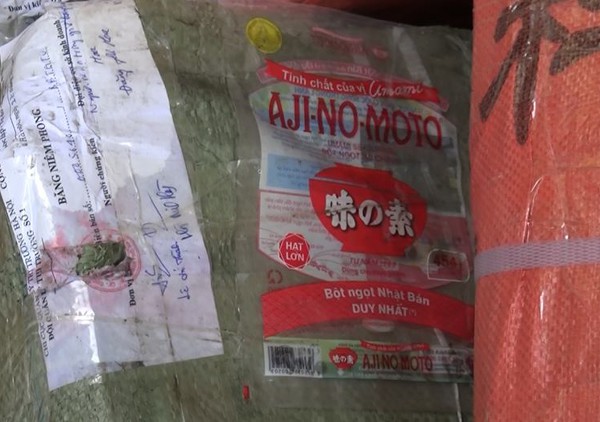 Tất cả số lượng bao bì này đều ghi tên các nhãn hiệu lớn như: Mì chính Ajinomoto, bột canh I - ốt Hải Châu và hạt nêm Knorr chờ được đóng gói.