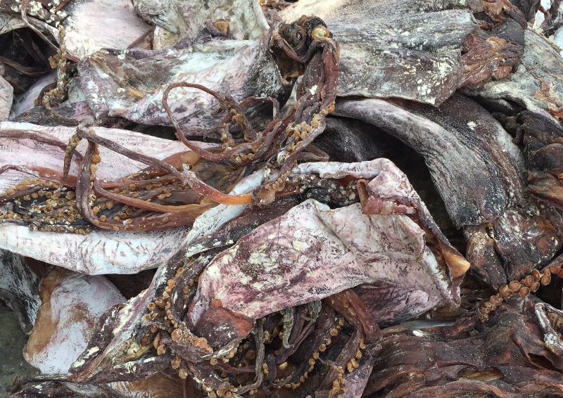 Toàn bộ số mực khô đã bốc mùi hôi thối. Ảnh: Dân Trí |