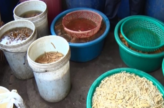 Tại thời điểm kiểm tra cơ quan chức năng phát hiện 15 thùng nhựa có chứa hơn 1 tấn măng có những biểu hiện nghi có chất vàng ô có khả năng gây ung thư.