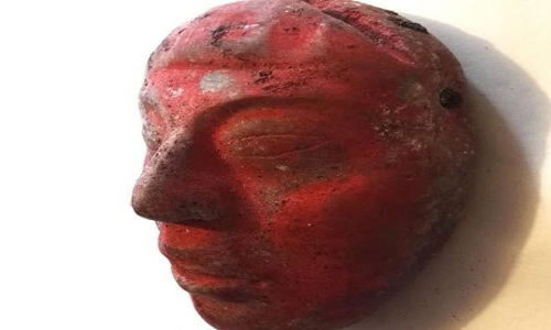 Mặt nạ ngọc bích sơn đỏ của vua Maya. Ảnh: National Geographic. |