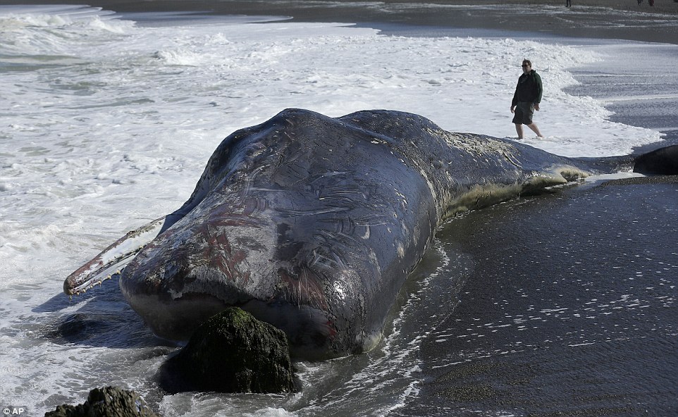 Đây là con cá nhà táng thứ 17 từng bị mắc kẹt và chết ở dọc các bờ biển phía bắc California trong hơn 40 năm qua. Các nhân viên môi trường phải làm việc vất vả để di chuyển con cá nhà táng. Hiện các chuyên gia vẫn đang nghĩ cách xử lý cái xác khổng lồ này.