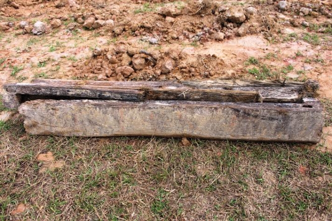 (Tinmoi.vn) Mộ cổ là một thân cây khoét rỗng hình thuyền, có chiều dài 2,20m, chiều rộng 0,50m, bằng chất liệu gỗ dâu đen bóng...mới được phát hiện trên cánh đồng Bồi Hoa, thuộc thôn 13, xã Cẩm Hưng, huyện Cẩm Xuyên, Hà Tĩnh.
