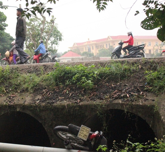 Tại hiện trường, thi thể người phụ nữ trẻ tuổi vẫn đội mũ bảo hiểm và xe máy hư hỏng nhẹ nằm giữa mương nước.