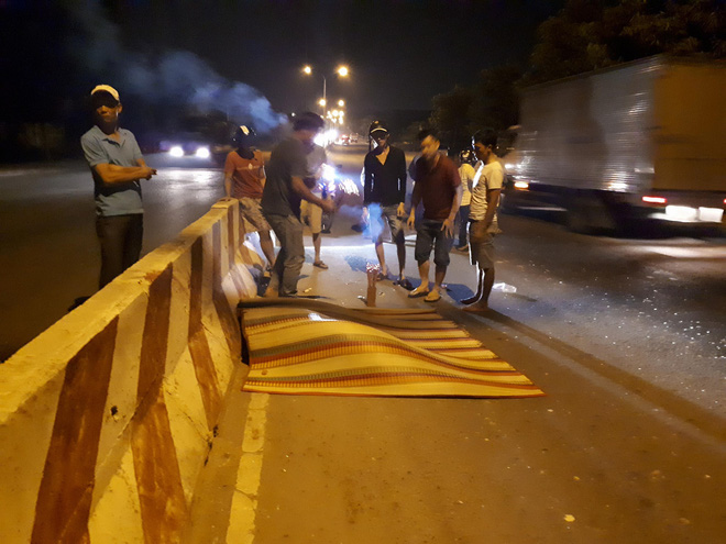Người dân đi ngang qua đường phát hiện một thi thể nằm trong làn đường dành cho ô tô sát dải phân cách, trên cổ nạn nhân có vết cắt rất lớn.