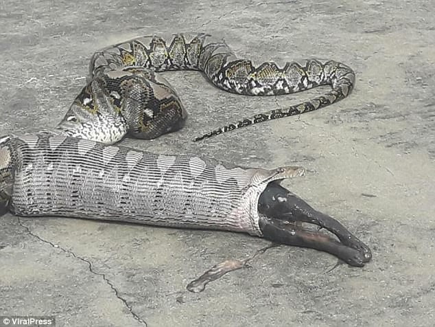 Khi phát hiện con trăn khủng đã nuốt phải thứ gì đó, những người dân đã hốt hoảng bắt bắt nó nhả ra thì phát hiện đó là một con mèo hoang.