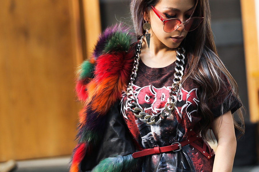 | Lyskeli tiếp tục trở thành tâm điểm ánh nhìn với style rock chick. |