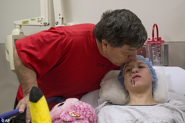 Cô bé Charlotte Ponce, 14 tuổi đã phải trải qua hàng chục ca phẫu thuật chỉnh hình để phục hồi khuôn mặt biến dạng từng bị gấu trúc cắn nát khi mới 3 tháng tuổi.