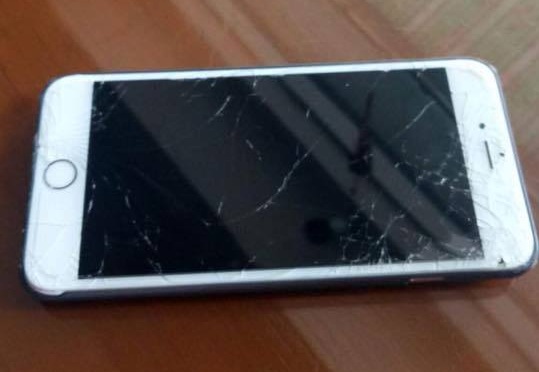 | Chiếc điện thoại bị vỡ sau khi Phó chủ tịch phường gạt rơi. Ảnh VTC |