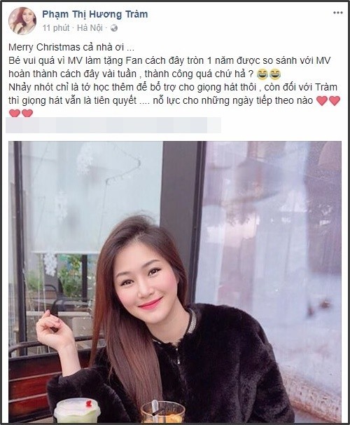 Hương Tràm chia sẻ dòng trạng thái đầy ẩn ý trên trang cá nhân: "Bé vui quá vì MV làm tặng fan cách đây tròn 1 năm được so sánh với MV hoàn thành cách đây vài tuần, thành công quá chứ hả?". Không chỉ thế, giọng ca của "Em gái mưa" còn nhấn mạnh việc "nhảy nhót chỉ là bổ trợ cho giọng hát", với cô, giọng hát vẫn là tiên quyết nhất.