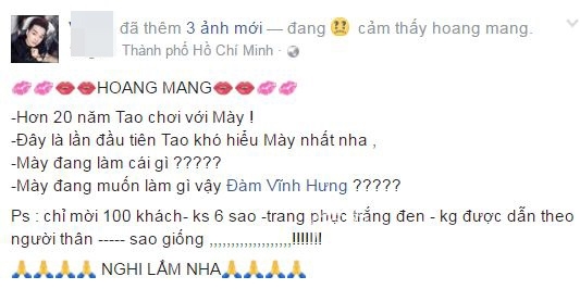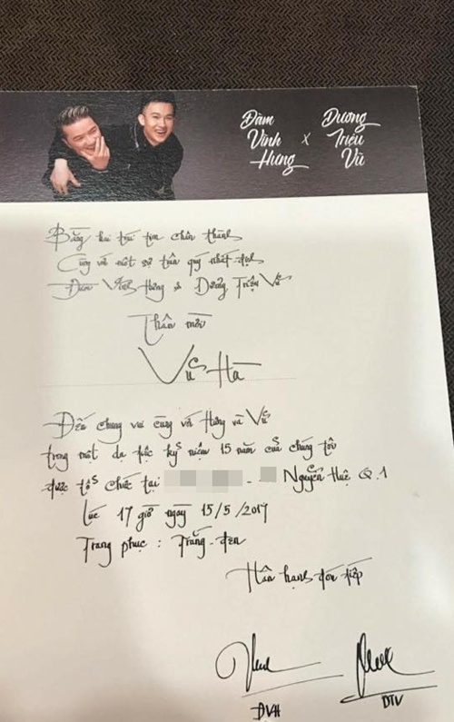 Trước thông tin này, phía đại diện Đàm Vĩnh Hưng đã lên tiếng xác nhận có tấm thiệp trên. Tuy nhiên, đây chỉ là buổi tiệc kỷ niệm 14 năm 9 tháng cả hai gắn bó và hợp tác với nhau.