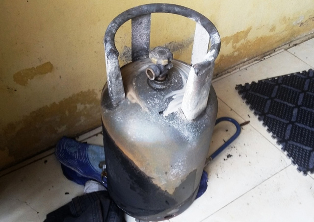 Bình gas bị rò rỉ gây cháy. Ảnh: Dân Trí |