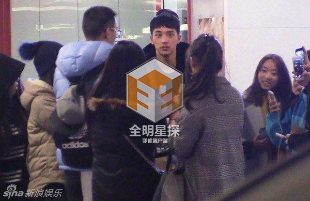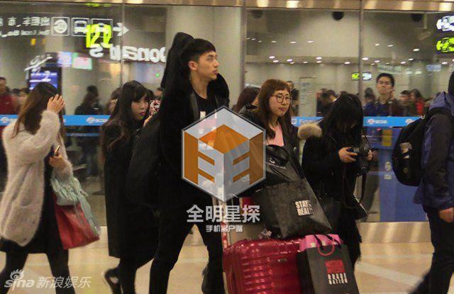 | Nam diễn viên tới sân bay Bắc Kinh. |