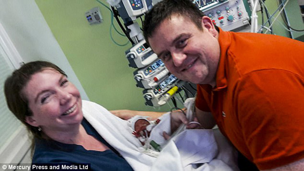 | Cậu bé chào đời vào ngày 29/9/2015 ở tuần thứ 26 của thai kỳ. Em đã phải ở trong lồng kính và thở bằng máy suốt 16 ngày. |