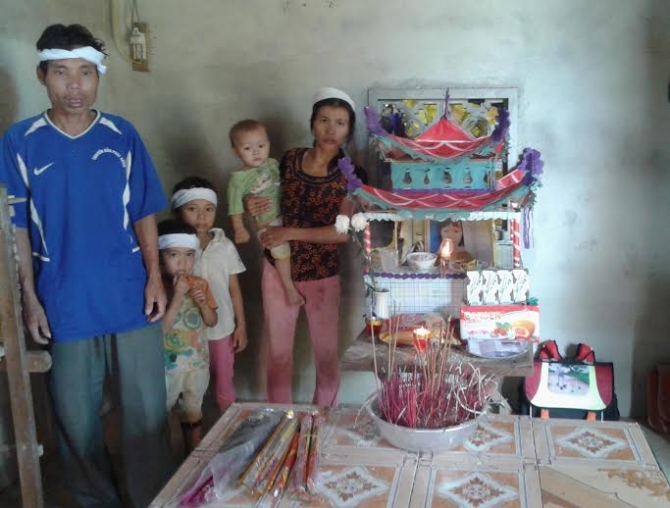 Gia đình anh Vân bên bàn thờ đứa con gái mới mất