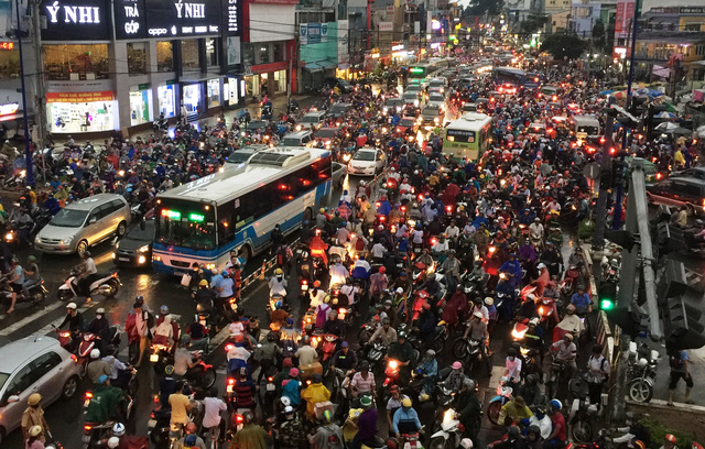 Các lực lượng CSGT, thanh niên xung phong được huy động tổng lực, dù phải căng mình dưới mưa điều tiết nhưng do phương tiện quá nhiều, đồng thời người tham gia giao thông tranh giành, luồn lách, không ai nhường đường ai để cố thoát khỏi kẹt xe và lo sợ mưa lớn, đường ngập nước khiến cảnh ùn tắc càng thêm dữ dội.