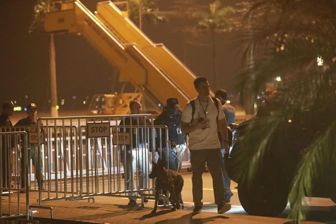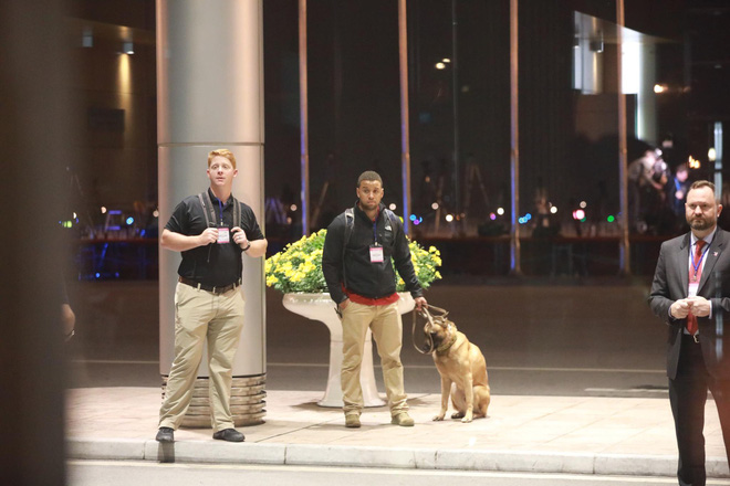 Nhằm bảo đảm an ninh trước khi chuyên cơ Air Force One chở theo Tổng thống Donald Trump hạ cánh, các đặc vụ Mỹ nhanh chóng triển khai hoạt động rà soát mọi ngóc ngách tại sân bay Nội Bài.