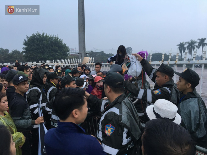 | Tính tới 6h sáng 11/11, theo ghi nhận của phóng viên, có khoảng vài trăm người xếp hàng, chen lấn phía ngoài hàng rào sắt sân vận động Mỹ Đình. Ảnh: Hiếu Lương |