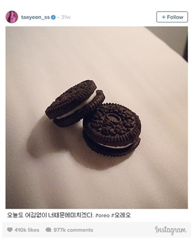 Taeyeon từng đăng bức hình 2 chiếc bánh oreo kèm theo dòng chú thích "Chắc chắn hôm nay cũng như vậy, tôi sẽ phát điên vì cậu #oreo". Nhiều người để ý rằng màu của loại bánh này trùng với tên của Baehyun trong âm Hán. Kết hợp các dữ kiện, fan suy luận rằng, Taeyeon muốn nói về Baekhyun qua hình ảnh chiếc bánh oreo. Trước đó, Baekhyun cũng từng đăng tải một bức hình trong ngày sinh nhật cũng có sự xuất hiện của 2 chiếc bánh oreo