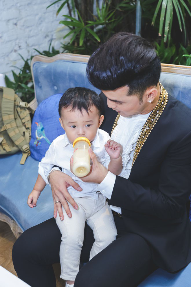 Bé Milk ngày một bụ bẫm, đáng yêu có thể nói đều nhờ một phần chăm sóc đầy chu đáo của nam ca sĩ.