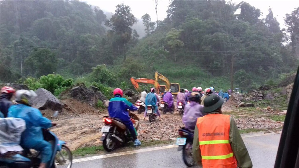 Hiện tại mưa lớn vẫn đang diễn ra, nguy cơ sạt lở đất đá tiếp tục tràn xuống là rất lớn.