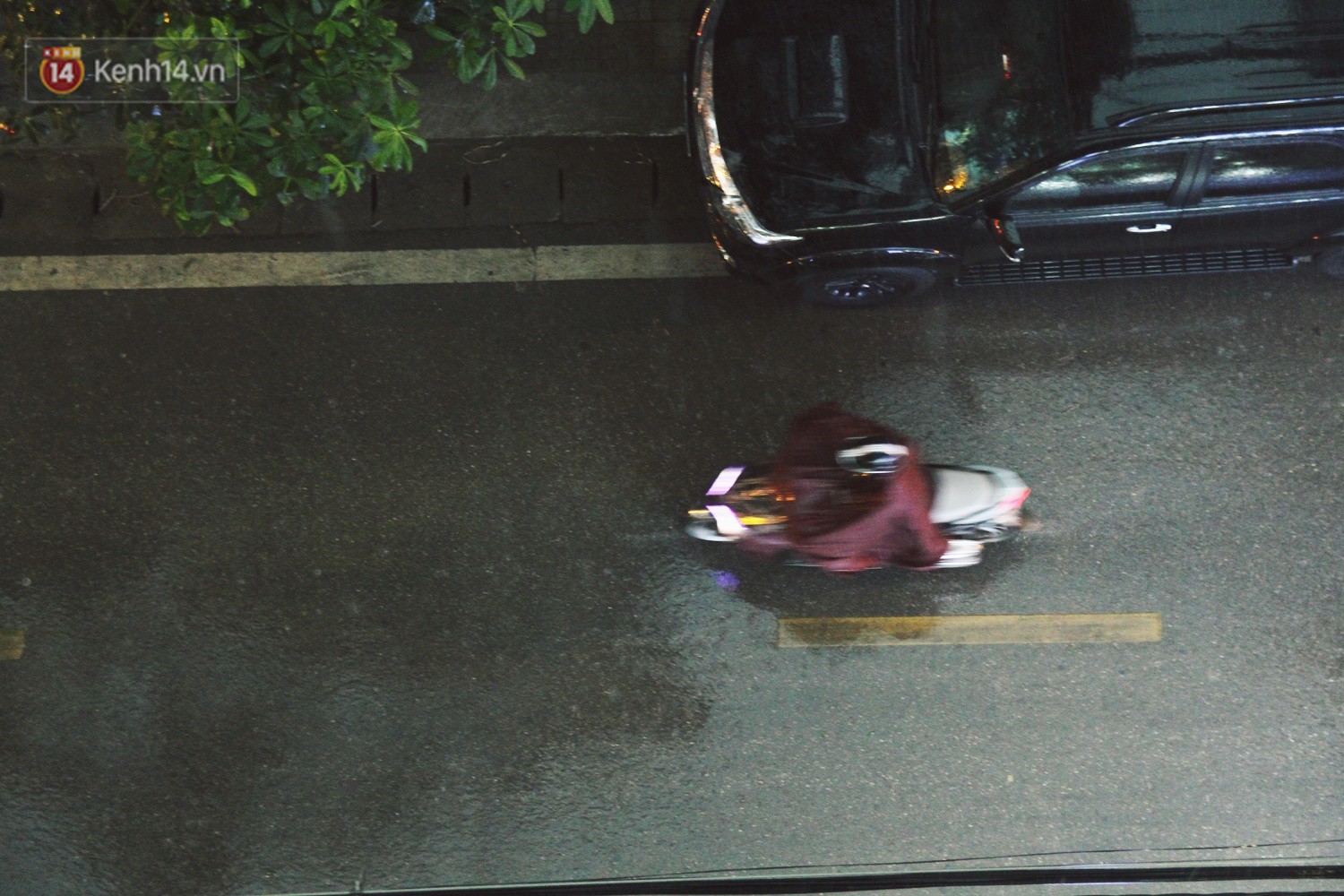 Cuối cùng sau nhiều ngày nắng nóng lên đến 36 độ C, Hà Nội đã có cơn mưa "giải khát". Trong ảnh, 2 người đàn ông vội phóng xe dưới mưa.