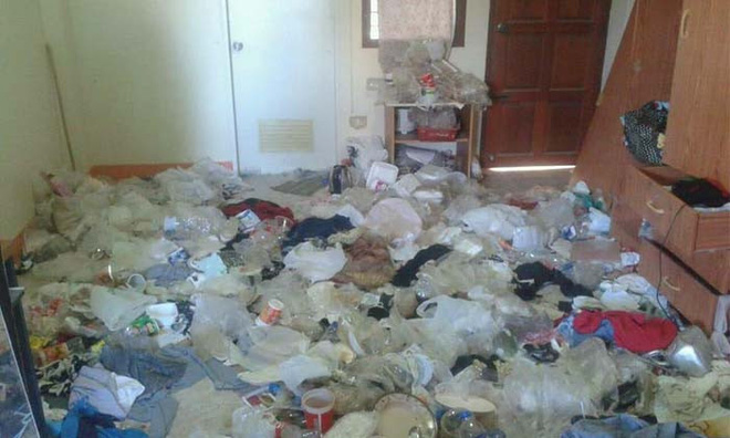 | Căn phòng nữ sinh viên để lại toàn là rác. |