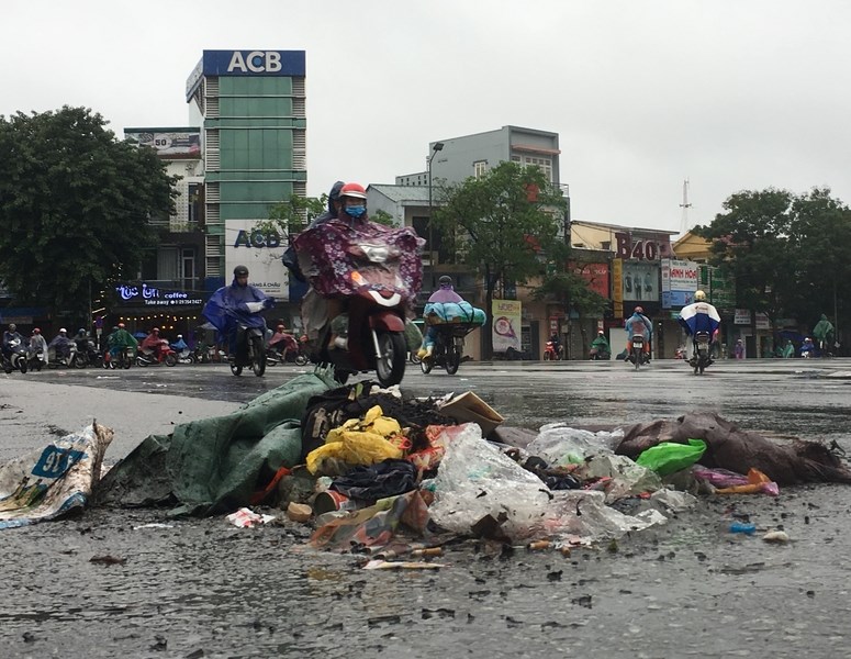 Nước lũ lên kéo theo đó là rác thải từ nhiều nơi tấp về thành phố, sau khi nước rút, rác thải tràn lan khắp nơi gây ô nhiễm môi trường.