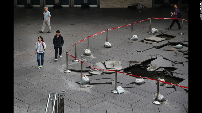 Sàn đá phiến tại một quận ở Đài Bắc bị siêu bão Dujuan tàn phá. Ảnh: AP |