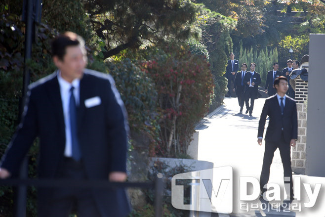 | Công tác chuẩn bị tại khách sạn Shilla đến 8h (khoảng 10h giờ địa phương) vẫn chưa được hoàn tất. Phía bên ngoài khách sạn, lực lượng an ninh được huy động để bảo vệ địa điểm tổ chức lễ cưới. |