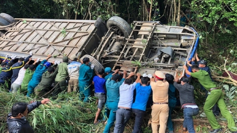 Cận cảnh hiện trường vụ tai nạn xe khách kinh hoàng ở Kon Tum