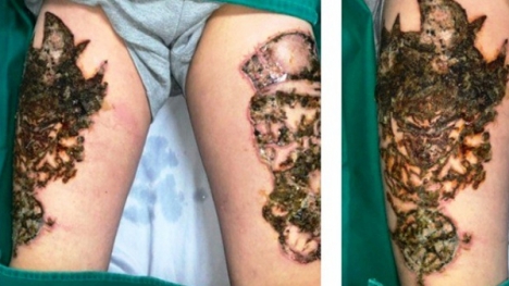Xóa xăm bằng đốt điện hoặc laser CO2, thanh niên bị tổn thương 2 đùi
