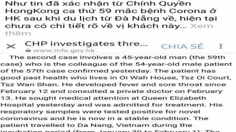 Sở y tế Đà Nẵng hiện đang tiến hành kiểm tra thông tin về ca nhiễm virus corona tại Hong Kong từng đến Đà Nẵng.