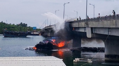 Tàu cá chứa 30.000 lít dầu bất ngờ bốc cháy ở cửa biển Sa Cần