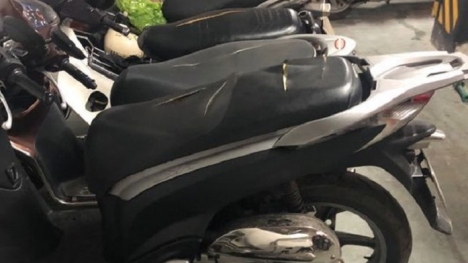 Hàng loạt xe máy để xe ở tầng 3 CT4 chung cư Eco Green City (Nguyễn Xiển, Hà Nội) đã bị kẻ gian rạch nát yên.