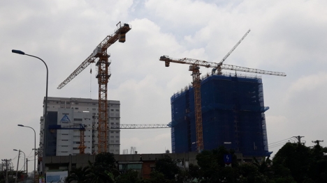 Cận cảnh những cần cẩu công trình dài hàng chục mét treo lơ lửng trên đầu người đi đường ở Sài Gòn