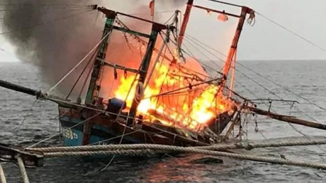 Đang hoạt động trên vùng ngư trường Thanh Hóa – Nghệ An, tàu cá mang số hiệu TH 90568TS bất ngờ bốc cháy, 7 ngư dân trú tại phường Quang Tiến, TP.Sầm Sơn, tỉnh Thanh Hóa buộc phải nhảy xuống biển trong đêm và được tàu cá ở gần đó cứu sống.