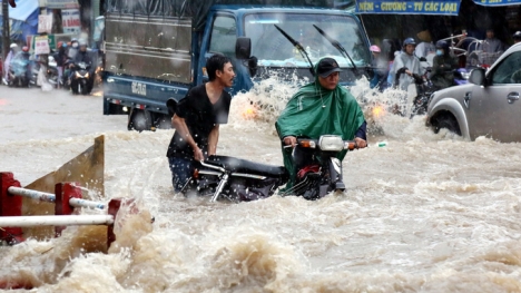 Mưa lớn cuốn trôi cả người và hàng loạt xe máy ở Đồng Nai