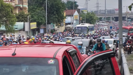 Hai ô tô truy đuổi nhau trên cầu Bình Triệu, cửa ngõ vào trung tâm Sài Gòn tê liệt ngày đầu tuần