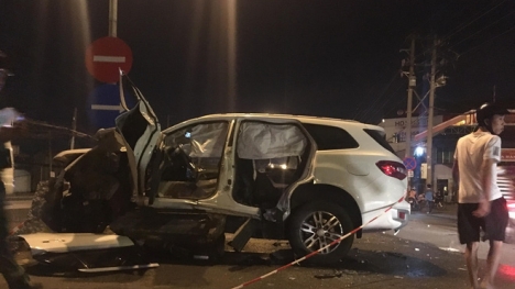 Tài xế Trung Quốc điều khiển xế hộp với tốc độ cực nhanh, bất ngờ cày nát dải phân cách rồi xoay ngang đường. Đội cứu nạn cứu hộ đã phải dùng máy cắt phá đầu xe cứu 2 người kẹt cứng bên trong.