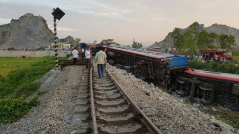 Tổng công ty Đường sắt cho biết, vụ lật tàu hoả vào rạng sáng 24/5 khiến đầu máy 927 bị đổ và 6 toa xe bị trật bánh khỏi đường sắt, ô tô bị hư hỏng. Lái tàu và phụ lái tàu bị kẹt trong cabin đầu máy 927 và đã tử vong, 6 hành khách bị thương.