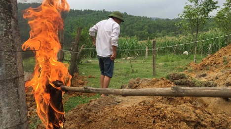 Khi lực lượng chức năng đào sâu xuống lòng đất khoảng 4m thì thấy có nguồn dầu rỉ ra theo mạch nước ngầm. Khi đưa lửa đến thử thì nước dưới hố đất bốc cháy dữ dội.