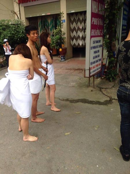 Mới đây, trên mạng xã hội Facebook lan truyền hình ảnh ghi lại cảnh 2 nữ và 1 nam gần như khỏa thân chỉ có độc một chiếc khăn tắm đủ để che những chỗ nhạy cảm đứng trước cửa nhà nghỉ khiến nhiều người không khỏi tò mò.