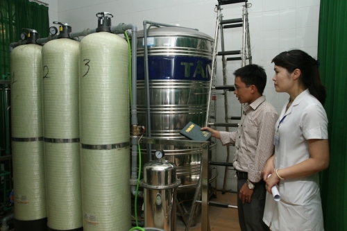 Hệ thống lọc nước của bệnh viện được bà Hương Trưởng khoa Kiểm soát nhiễm khuẩn (Bệnh viện Tâm thần Trung ương I) giới thiệu. Ảnh Thành Long |