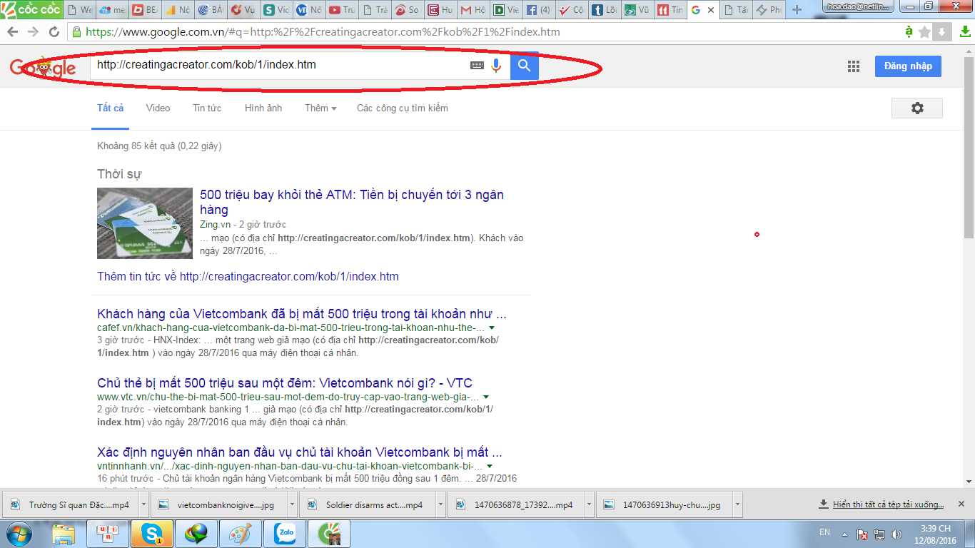 Theo đó, trang web giả mạo (có địa chỉ http://creatingacreator.com/kob/1/index.htm) vào ngày 28/7/2016 qua máy điện thoại cá nhân. Từ việc truy cập này, thông tin và mật khẩu của khách hàng đã bị đánh cắp, sau đó tài khoản khách hàng đã bị lợi dụng vào đêm ngày 3 rạng sáng ngày 4/8.