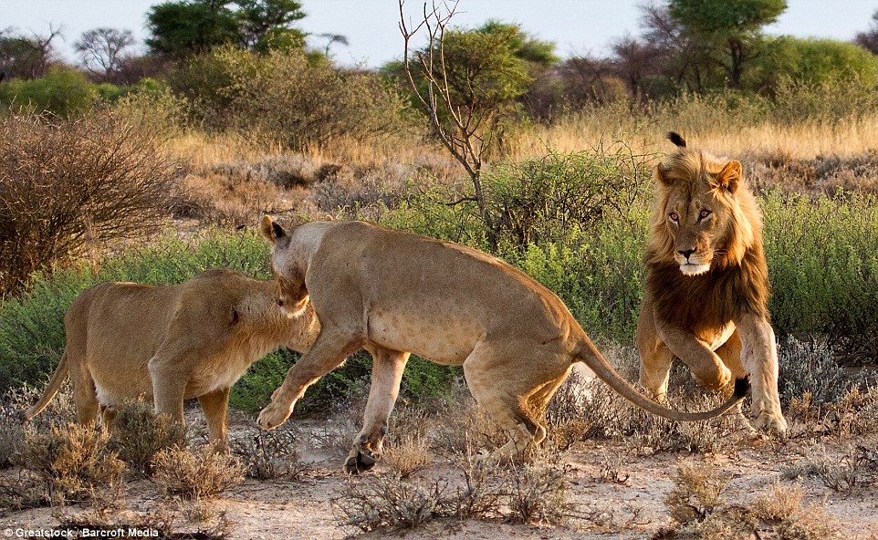 | Sư tử cái liên tiếp tấn công bạn tình. Ảnh: Daily Mail |