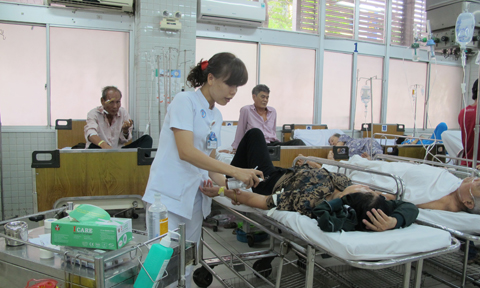 Nạn nhân được người dân địa phương đưa đến bệnh viện cấp cứu.