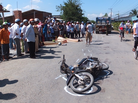 Vào thời điểm trên, hai nam sinh chở nhau trên xe máy mang BKS: 63F9-4334 lưu thông trên đường 878B theo hướng QL1a hướng về huyện Chợ Gạo, đã va chạm với xe ben chở vật liệu xây dựng mang BKS: 54S-2094, do tài xế Phạm Thanh Ngân (39 tuổi, ngụ xã Phú Kiết, huyện Chợ Gạo) điều khiển theo chiều ngược lại.