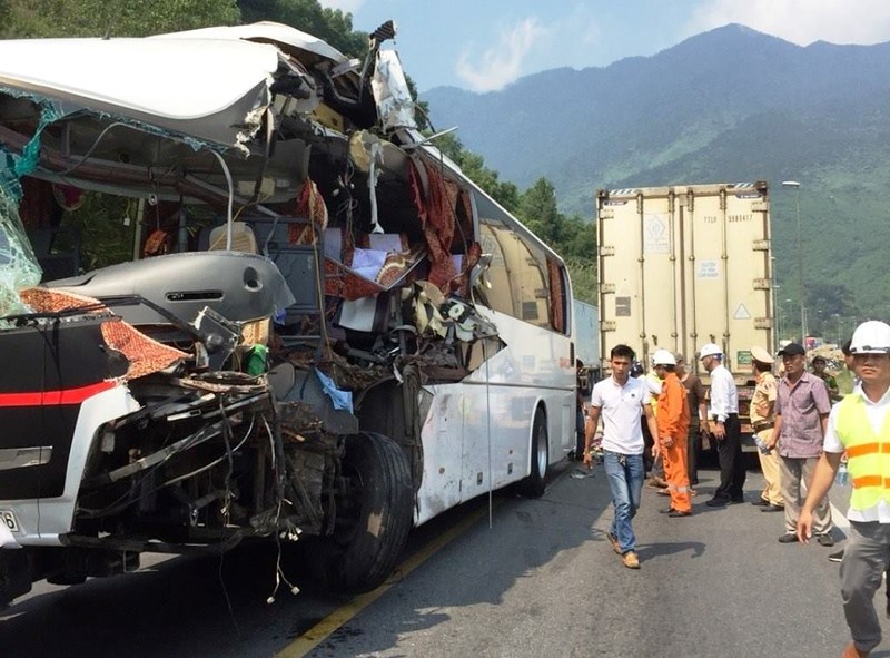 Vụ tai nạn xảy ra vào khoảng 12h15 trưa 18/2 tại đường dẫn vào hầm Hải Vân (Đà Nẵng). Hậu quả làm 19 người bị thương.