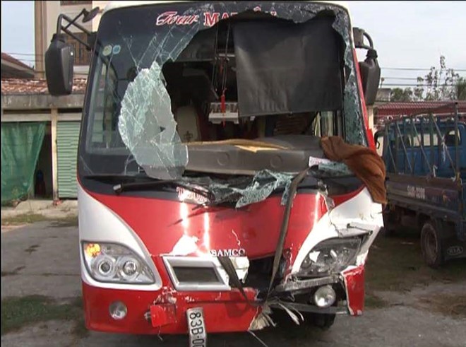 Chiếc xe khách hư hỏng nặng - Ảnh: L.H/ Tri thức trực tuyến |