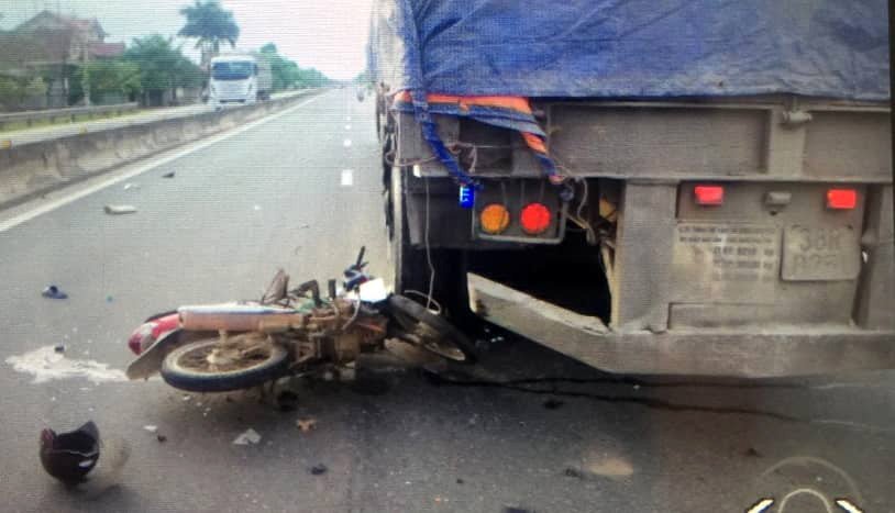 Khi đi đến Km 502+900, đoạn qua thôn Thống Nhất, xã Phù Việt (Thạch Hà, Hà Tĩnh) thì xe máy đâm vào phía sau xe container BKS 38N-2152, kéo theo rơ-moóc BKS 38R-0251 do tài xế Võ Anh Tuấn (SN 1987, trú huyện Can Lộc) lái cùng chiều.
